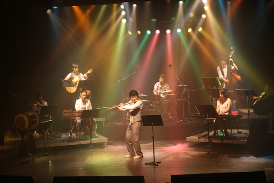 ‘대금’은 한국음악에서 널리 사용되는 관악기다. 대나무로 만들며 옆으로 부는 형태로, 왼쪽 어깨에 얹어서 연주하기 때문에 연주자는 고개를 왼쪽으로 틀어야 한다. 동서양을 통틀어 이런 형태로 연주되는 유일한 악기다. 길이는 80센티미터가 넘어 나발과 함께 한국 전통 관악기 중 가장 크다. 향피리 2개, 해금, 장구, 북..